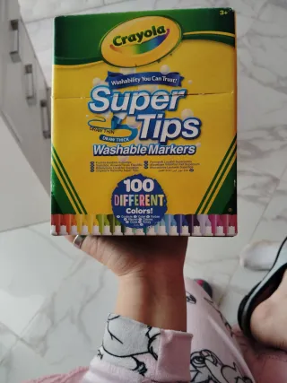 Caja de 100 rotuladores Crayola Super Tips lavables. - 100 colores diferentes. - Trazos finos y gruesos. - Lavables.
