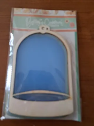 Adorno de madera con forma de campana, ideal para proyectos de scrapbooking y manualidades. - Material: Madera. - Diseño: Forma de campana con asa. - Color del interior: Azul.