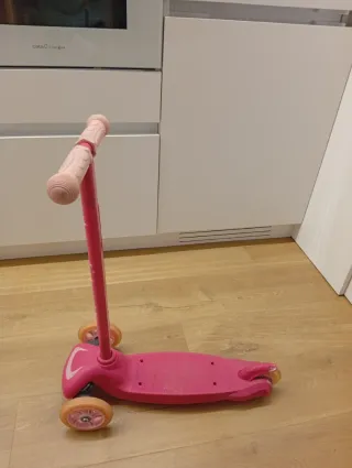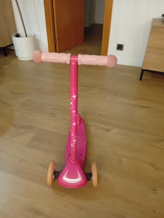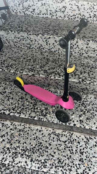 Patinete infantil de tres ruedas en color rosa, ideal para los más pequeños. Diseñado para ofrecer estabilidad y diversión. - Tres ruedas para mayor equilibrio. - Manillar ajustable. - Plataforma antideslizante.