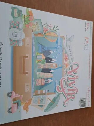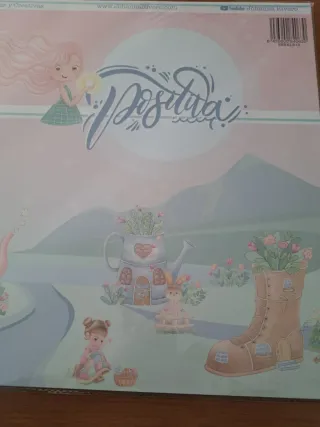 Papel de scrapbooking con un diseño encantador y positivo. - Ilustraciones de estilo infantil con sirenas, conejos y casas. - Tonos pastel y motivos florales. - Ideal para proyectos de manualidades y decoración.