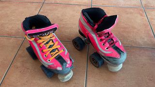 Patines en línea Oxelo en color negro con detalles en rosa. Perfectos para iniciarse en el patinaje. - Talla 39.5. - Cierre con cordones, velcro y hebilla. - Ruedas de 70mm. - Rodamientos ABEC 3.
