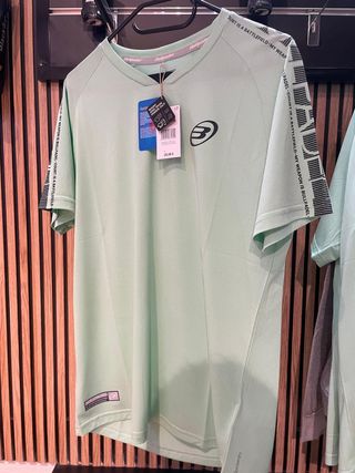 Camiseta Bullpadel de manga corta en color verde menta. Presenta un diseño deportivo con detalles en las mangas. - Cuello redondo. - Logo de Bullpadel en el pecho. - Inscripción COURT IS A BATTLEFIELD en las mangas.
