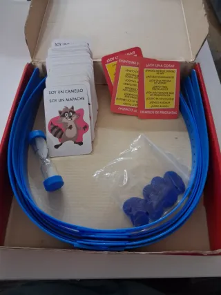Juego de mesa Hedbanz, ideal para divertirse en familia o con amigos. Contiene cartas con personajes y preguntas. - Incluye cartas de Soy un camello y Soy un mapache. - Incluye cartas de Soy una cosa con ejemplos de preguntas. - Incluye un pequeño reloj de arena. - Incluye fichas azules.