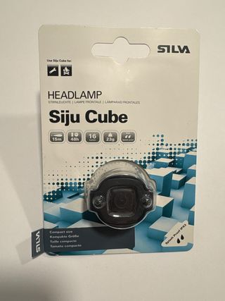 Frontal compacto y ligero de Silva, modelo Siju Cube. Está sin estrenar, sin abrir en su envoltorio original. - 16 lúmenes de potencia. - Autonomía de hasta 48 horas. - Resistente a salpicaduras (IPX3). - Peso: 23g.