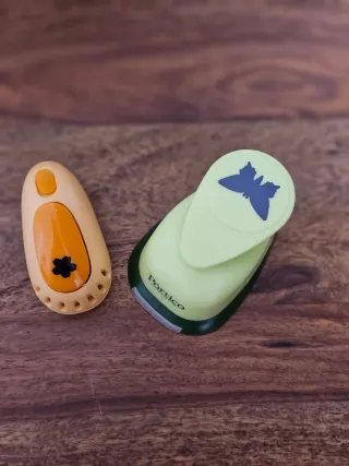 Set de dos troqueladoras para manualidades en papel. Perfectas para dar forma a tus creaciones. - Troqueladora con forma de mariposa. - Troqueladora con forma de flor.
