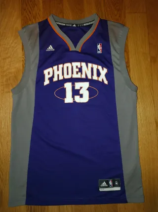 Camiseta original de Steve Nash de los Phoenix Suns, marca Adidas. - Color morado y gris. - Número 13 en blanco. - Logo de Adidas y NBA.