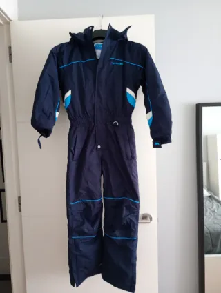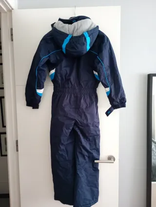 Mono de esquí o nieve en color azul marino con detalles en azul claro y blanco. Ideal para mantener el calor y la sequedad en la montaña. - Diseño con capucha. - Cintura elástica. - Cremallera frontal.