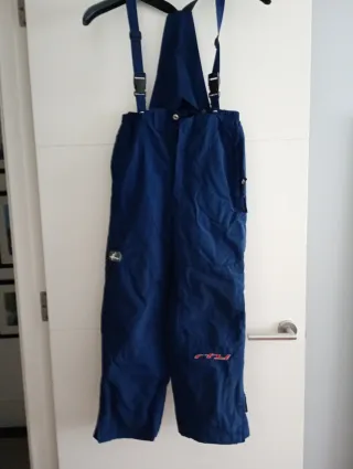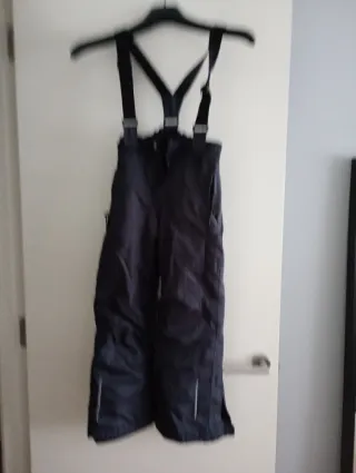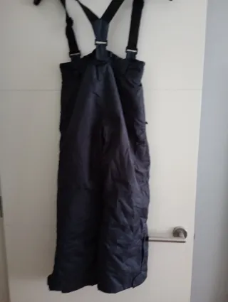 Pantalón de nieve con tirantes, ideal para actividades invernales. - Color azul oscuro. - Diseño con tirantes ajustables. - Cremalleras en los bajos.