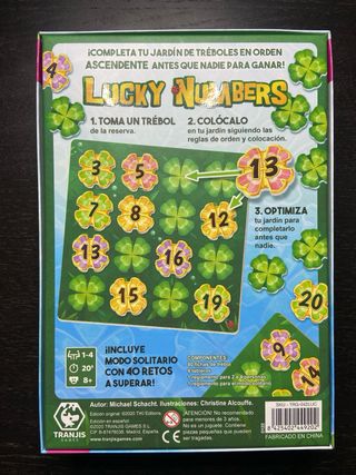 Juego de mesa Lucky Numbers, diseñado por Michael Schacht. ¡Crea tu propia suerte! - Ilustrado por Christine Alcouffe. - Incluye componentes con números y tréboles. En perfecto estado. Hago envíos.