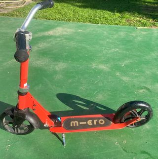 Patinete Micro Cruiser en color rojo. Funciona perfectamente. Desliza muy bien. Es cómodo y de gran calidad. - Manillar altura ajustable. - Freno en rueda trasera - Hasta 90 kg de peso. - Diseño plegable para facilitar su transporte. - Ruedas de goma para un deslizamiento suave. - Plataforma antideslizante para mayor seguridad.