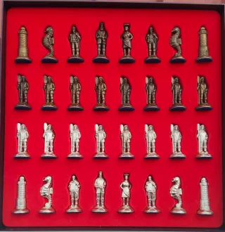 Tablero de ajedrez figuras metálicas