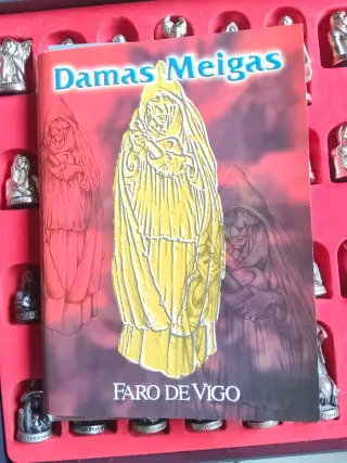 Set de juego de Damas Meigas de Faro de Vigo. Incluye las figuras y el tablero. - Figuras de colección. - Diseño inspirado en las Meigas. -Figuras de Metal. -Parte trasera de Metacrilato de 30 x 30 cm. -Ficha explicativa del juego -Cada figura tiene una ficha explicativa -Del año 2008. -Juego para coleccionistas -Venta en mano