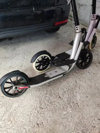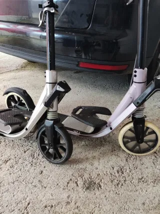 dos patinetes oxelo town, con sus adaptadores para llevar niños. Nosotros los usamos en viajes y es muy cómodo para visitar ciudades sin tener que ir con carritos o llevarlos en el colo cuando se cansan, ocupan poco y los puedes llevar en el metro o cercanias, aparte les encanta a los peques. Precio separado - El negro (mas uso) 40€ - El rosa 65€ El conjunto por 80€