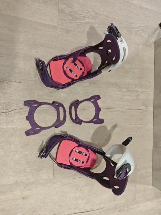 Par de fijaciones para snowboard de la marca Rome mujer.