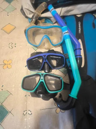 Completo conjunto para snorkel, listo para usar. - Incluye máscara de buceo. - Aletas de natación. - Tubo de snorkel.