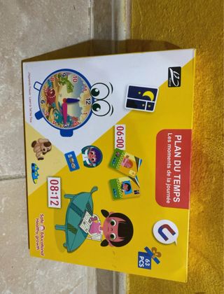 Juego de mesa educativo Plan du Temps para aprender las horas y las rutinas diarias. El juego está sin abrir. - Incluye 63 piezas. - Fomenta el aprendizaje seguro y saludable.