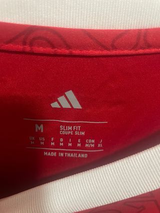 Camiseta de fútbol del Arsenal, modelo de la marca Adidas. - Diseño en color rojo con detalles blancos. - Escudo del Arsenal bordado. - Logo de Adidas en blanco. - Patrocinador Emirates Fly Better en el frontal.