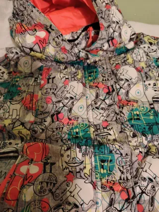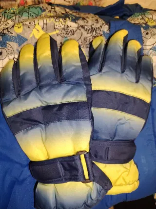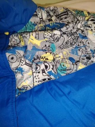 Conjunto de ropa para la nieve con un divertido estampado de monstruos. - Diseño con personajes animados en blanco, negro, azul y amarillo. - Tejido exterior azul electrico liso. -Talla 15-16 Más guantes de regalo