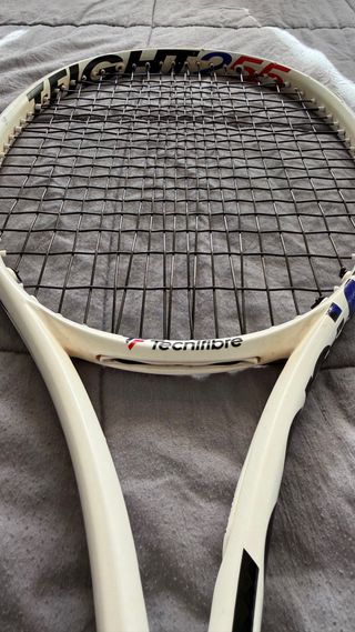 Raqueta de tenis Tecnifibre T-Fight 255 en buen estado, con roces pero sin grietas. Tengo 2, puedo venderlas en pack - Peso: 255 g / 9 oz. - Patrón de encordado: 16x19. - Balance: 335 mm / 100 sq.in. - Tensión recomendada: 22-25 kg / 49-55 lbs.