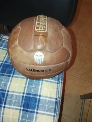 Balón de fútbol antiguo del Valencia C.F. - Diseño clásico de cuero. - Cordones de ajuste. - Escudo del Valencia C.F. visible.