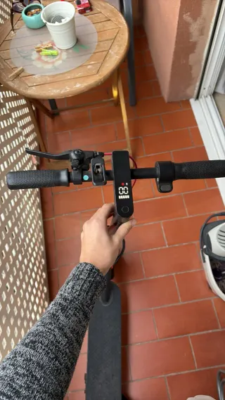 Patinete eléctrico en color negro, ideal para desplazamientos urbanos. - Diseño plegable para facilitar su transporte. - Ruedas resistentes para un mejor agarre. Los neumáticos especiales anti pinchazos. - Faro delantero para visibilidad nocturna.