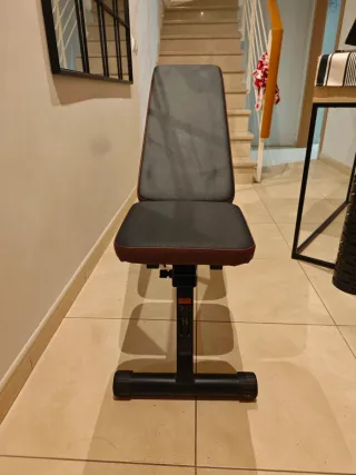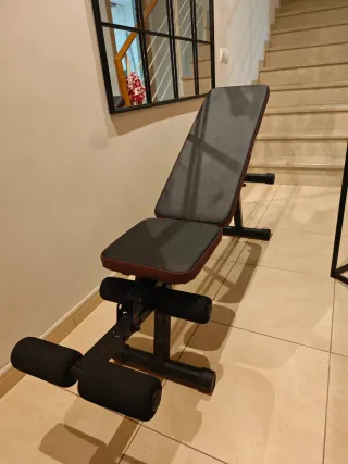 Banco reclinable para ejercicios de pesas y abdominales. Su diseño permite ajustar el respaldo para diferentes tipos de entrenamiento. - Estructura metálica robusta. - Acolchado cómodo en asiento y respaldo. - Reposapiés acolchados para mayor sujeción.
