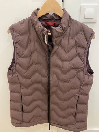Chaleco acolchado de Born Living Yoga, perfecto para añadir una capa extra de abrigo. - Diseño acolchado con patrón de ondas. - Cuello alto. - Cierre de cremallera frontal. - Bolsillos laterales.