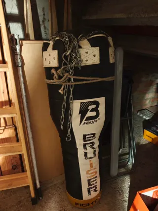 Saco de boxeo de la marca BRUISER, modelo Uppercut, con unas dimensiones de 120 cm de alto y 40 cm de diámetro. - Color negro y blanco. - Incluye cadena para colgar. - Peso: 35kg Excelente saco de boxeo fabricado en piel natural Amara. Argollas cosidas al saco para sujección de las cadenas. Entrena en casa con nuestro Saco de Boxeo para ganchos, directos, movilidad. Precio nuevo en web de 175€, ver foto.