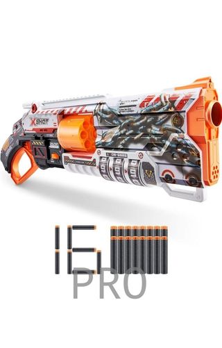 X-Shot Skins Lock Blaster de ZURU con 16 Dardos, Cilindro Giratorio, tecnología Air Pocket Dart, Mecanismo de Bloqueo con código único, Pistola de Espuma de Juguete para niños, Adolescentes y Adultos