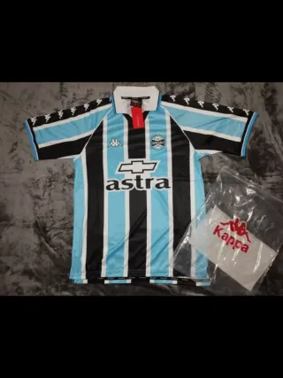 Camiseta de fútbol retro del Gremio, talla L. Diseño clásico con las icónicas rayas verticales. - Marca Kappa. - Detalles de diseño en las mangas. - Incluye etiqueta original.