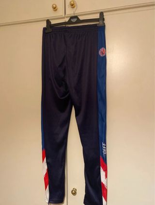 Pantalón deportivo del Club Volei Premia de Dalt en color azul. Voley Talla 16 - Diseño con detalles en azul y blanco/rojo en los laterales. - Logo del club en la parte superior. - Tejido técnico