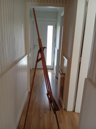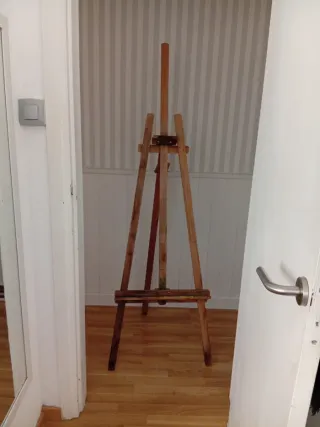 Caballete de madera para pintar, ideal para artistas. - Estructura de madera. - Soporte ajustable para lienzos.