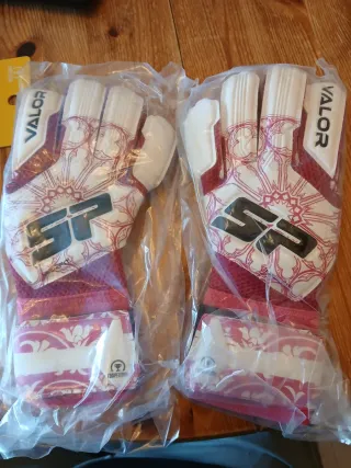 Guantes de portero SP Valor Competition en talla 8. - Diseño en blanco y burdeos con detalles. - Incluyen funda protectora.