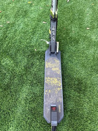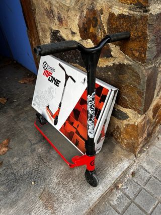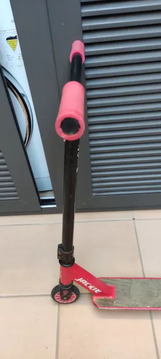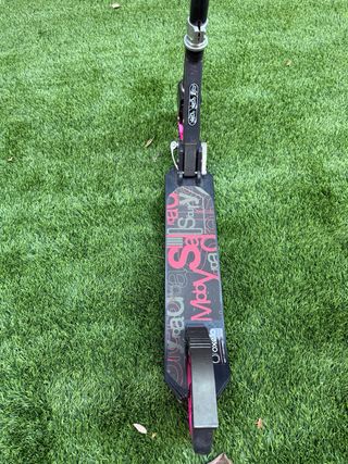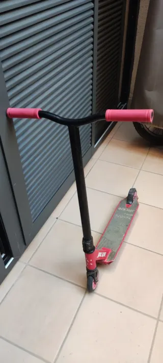 Patinete de la marca Bestial Wolf en color rojo. Ideal para desplazamientos y trucos. - Manillar con puños rosas. - Plataforma de patinaje. - Ruedas delanteras y traseras. Habría que cambiar rueda trasera. Funciona normal pero sería mejor