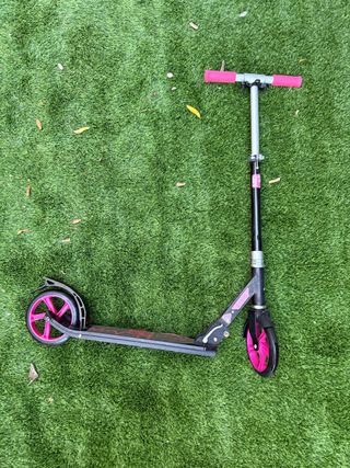 Patinete de dos ruedas en color rosa, ideal para niños en buen estado. - Manillar ajustable en altura. - Ruedas de color rosa. - Plataforma con diseño. - Freno trasero. -Es Plegable