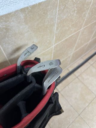 Regalo set de palos de golf con la compra de la bolsa Wilson. - Bolsa de golf negra, gris y roja marca Wilson - Incluye varios palos de golf de marcas varias marcas: 1 Dunlop, 2 Cougar y 1 Wilson - Aún tienen vida por delante