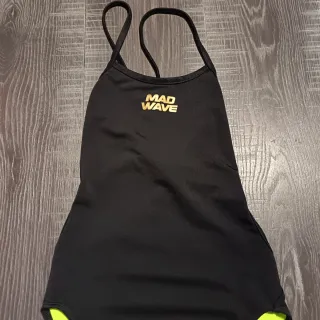 Bañador deportivo de la marca Mad Wave. - Muy poco uso, se ha quedado pequeño en muy poco tiempo. - Nuevo me costó unos 60€ - Color negro con detalles en lima. - Diseño de tirantes finos.