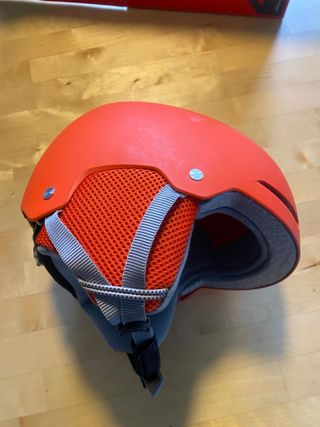 Casco de esquí de la marca Alpina modelo Zupo en color naranja. Diseñado para ofrecer protección y comodidad. - Talla 51-55. Niña/niño de 10-12 años. - Como nuevo. - Solo lo ha usado una niña 2 días. - Vendo porque lo compré por internet y me equivoqué de talla. - Va en su caja original. - Exterior de plástico resistente. - Interior acolchado para mayor confort. - Sistema de ajuste con correas.