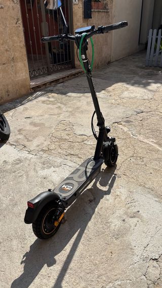 Patinete plegable de la marca XOOTR, diseñado para adultos. Su estructura es de aluminio, lo que lo hace ligero y resistente. - Plegable para facilitar su transporte y almacenamiento. - Ruedas de goma para un desplazamiento suave. - Manillar ajustable en altura.