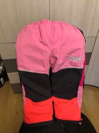 Pantalón de esquí Helly Hansen para niño/a en talla 110cm. Diseñado para ofrecer comodidad y protección en la nieve. - Color rosa vibrante con detalles en negro y naranja. - Cintura elástica para un ajuste cómodo. - Logo de Helly Hansen reflectante en la pierna.