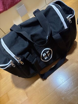 Bolsa deportiva de la marca Macron, con el escudo de la RFEF. - Color negro con detalles blancos. - Asa larga ajustable y asas cortas. - Cierre de cremallera.
