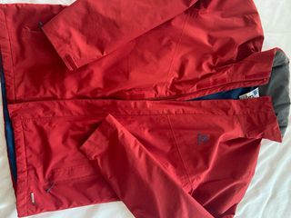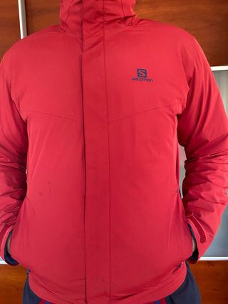 Anorak de esquí de la marca Salomon en talla L. Color rojo. - Logo de Salomon en azul marino. - Cremallera frontal. - Bolsillos laterales.
