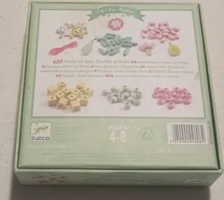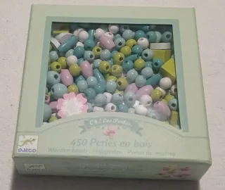 Caja de 450 perlas de madera de la marca Djeco, ideal para manualidades y creaciones. - Incluye 450 perlas de madera. - Variedad de formas y colores. - Marca: Djeco.