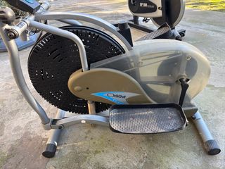 Bicicleta elíptica marca Orbitrek, modelo Platinum. Diseñada para un entrenamiento cardiovascular completo. - Estructura metálica resistente. - Pedales amplios y antideslizantes. - Disco de inercia para resistencia. - Cubierta protectora del mecanismo.