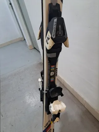 Conjunto de esquís junior de la marca Salomon, ideal para niños que se inician en el esquí. Incluye fijaciones. - Esquís de la marca Salomon. - Diseñados para esquiadores junior. - Incluye fijaciones y palos