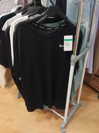 Camiseta deportiva Nike Running de talla XL en color negro. Perfecta para entrenamientos. - Tecnología Dri-Fit para mayor transpirabilidad. - Diseño ligero y cómodo. - Logo de Nike en el pecho.