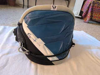 Arnés de kitesurf y windsurf con diseño moderno. Marca brunotti. Talle S/M Con cuchilla corta lineas incorporado. - Color azul y blanco. - Detalle de estrellas en la parte trasera. - Incluye mosquetón metálico.