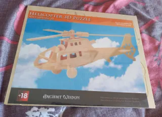 Puzzle 3D de madera con forma de helicóptero. Es un modelo fácil de montar, ideal para pasar un buen rato. - Material: Madera. - Diseño: Helicóptero. - Precintado.