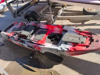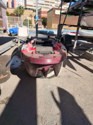 Kayak de pesca en perfecto estado, lo vendo porque me voy a vivir a otro pais y quiero recoger dinero para esta aventura. El kayak no tiene ningún fallo, está casi nuevo. -Aguanta hasta 200kg. -Lo vendo con pedalera, en perfecto estado también la pedalera, con repuestos de las aletas. -Con remo. -Con chaleco. -Accesorios varios para llevar mas cosas en el kayak. -Timon de dirección en perfecto estado. -Tiene preparado para instalar motor, ya está instalada las 2 pletinas para ellos. -La silla es ajustable y también viene incluida.