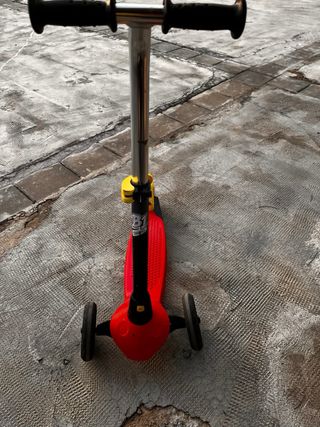 Patinete infantil de tres ruedas, ideal para los más pequeños. Diseñado para soportar hasta 20 kg de peso. - Color rojo y negro. - Empuñaduras negras. - Ruedas negras.